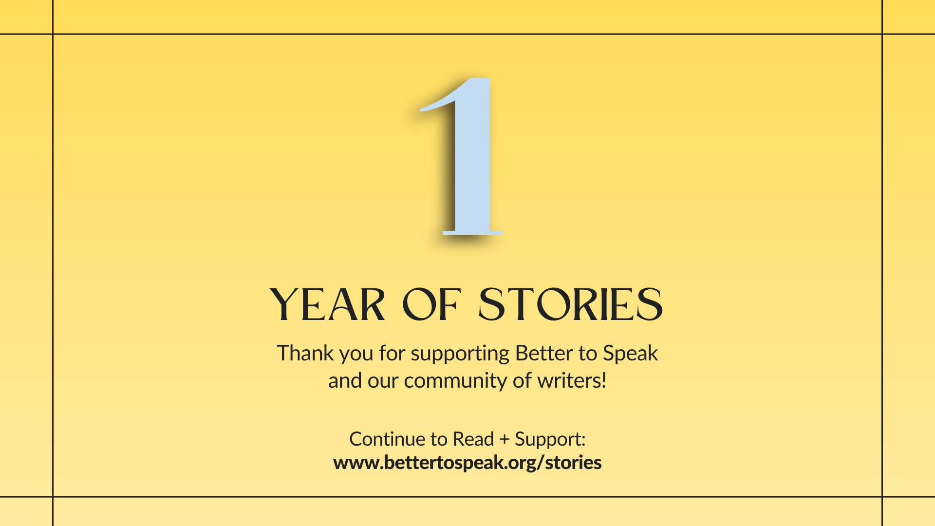As you may have already seen, Better to Speak is currently on a public-facing break – largely from publishing and partnerships – to focus our resources on fundraising and development until September. While this is a bit of a transition for me personally, I’m excited to move forward with our current internal projects that I hope will be an investment in Better to Speak’s growth and future.